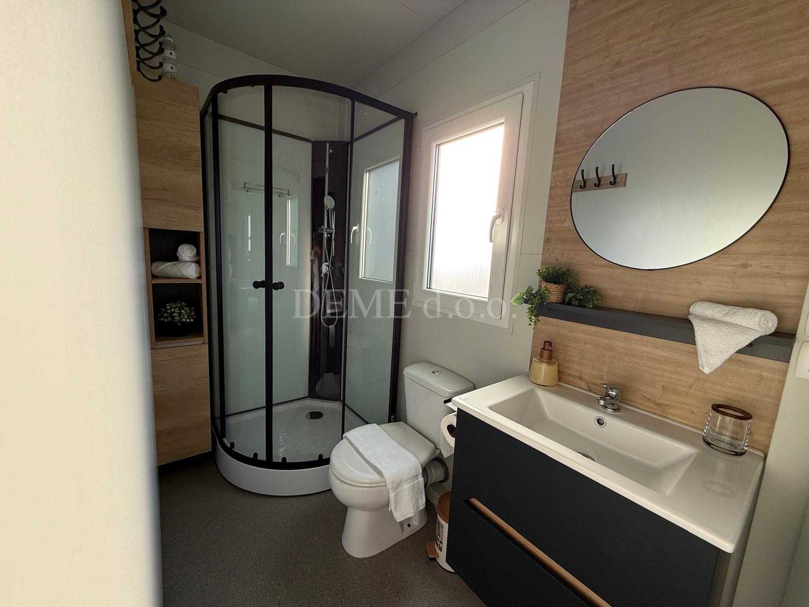A 24 m²-es mobilház praktikus kialakításának köszönhetően ideális választás családok vagy baráti társaságok számára. Az elrendezés a következőket tartalmazza: