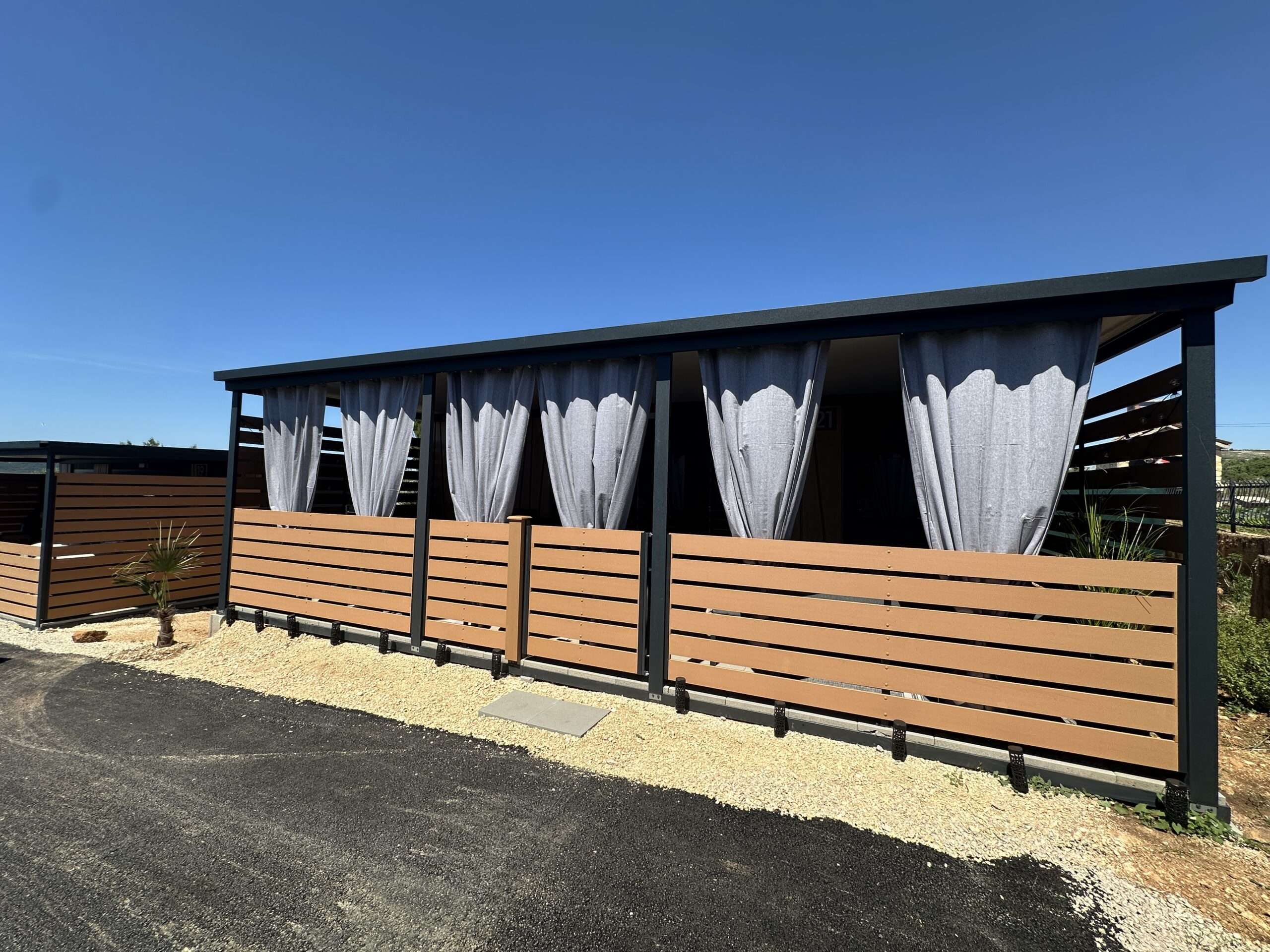 Fedezze fel a pihenés új szintjét modern mobilházainkban, amelyek az újonnan megnyílt Camp Deme magánkemping területén találhatók, Sveti Filip i Jakov hangulatos környezetében.